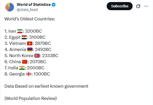 ۱. 🇮🇷 ایران – ۳۲۰۰ سال قبل از میلاد